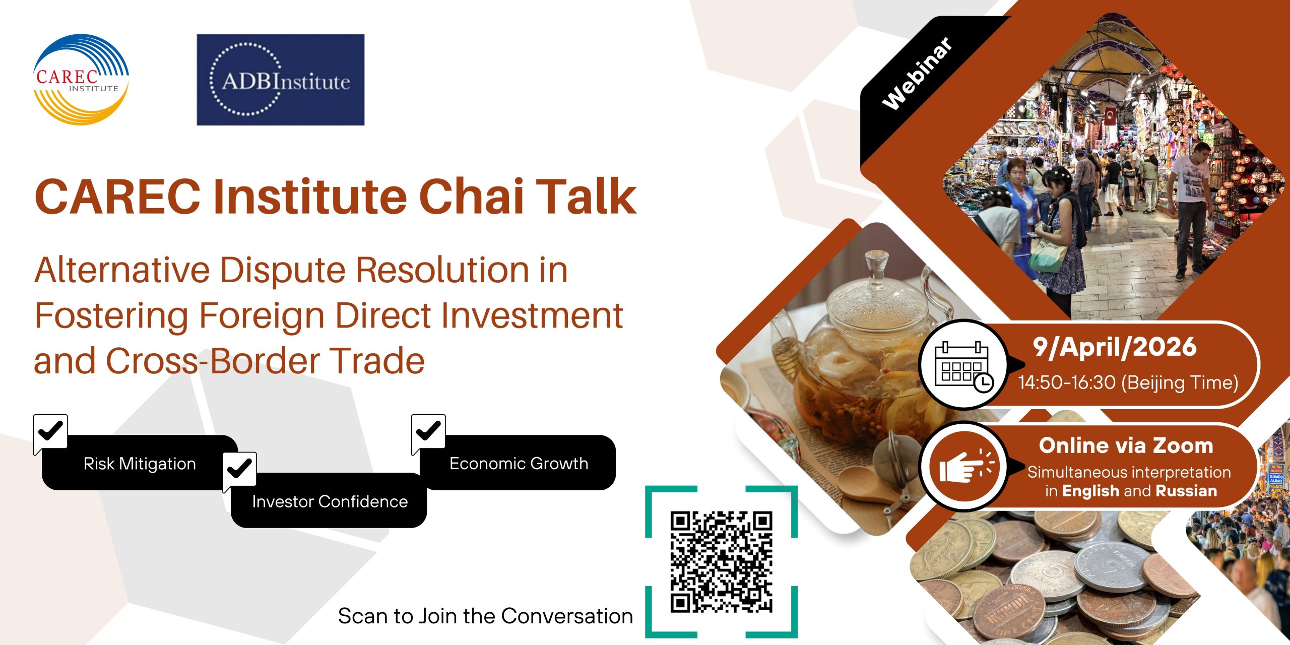 Join the CAREC Institute and the Asian Development Bank Institute (ADBI) for an insightful online dialogue on how effective Alternative Dispute Resolution (ADR) mechanisms can unlock greater investment and trade in the dynamic Central Asia region.