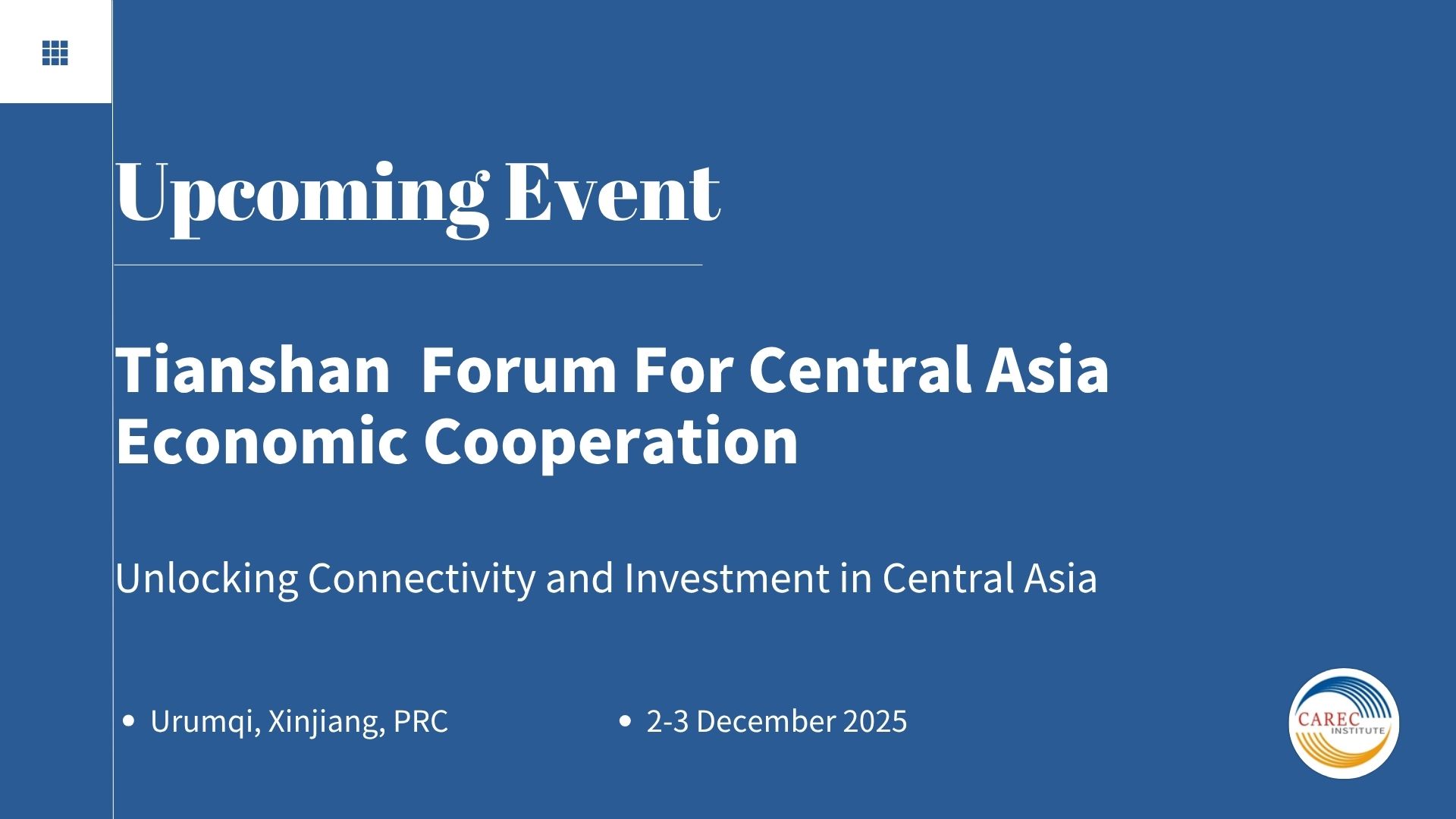 The Tianshan Forum for Central Asia Economic Cooperation will convene under the theme “Unlocking Connectivity and Investment in Central Asia.” The forum is dedicated to catalyzing investment in the CAREC region by fostering policy dialogue, knowledge sharing, and strong stakeholder collaboration.