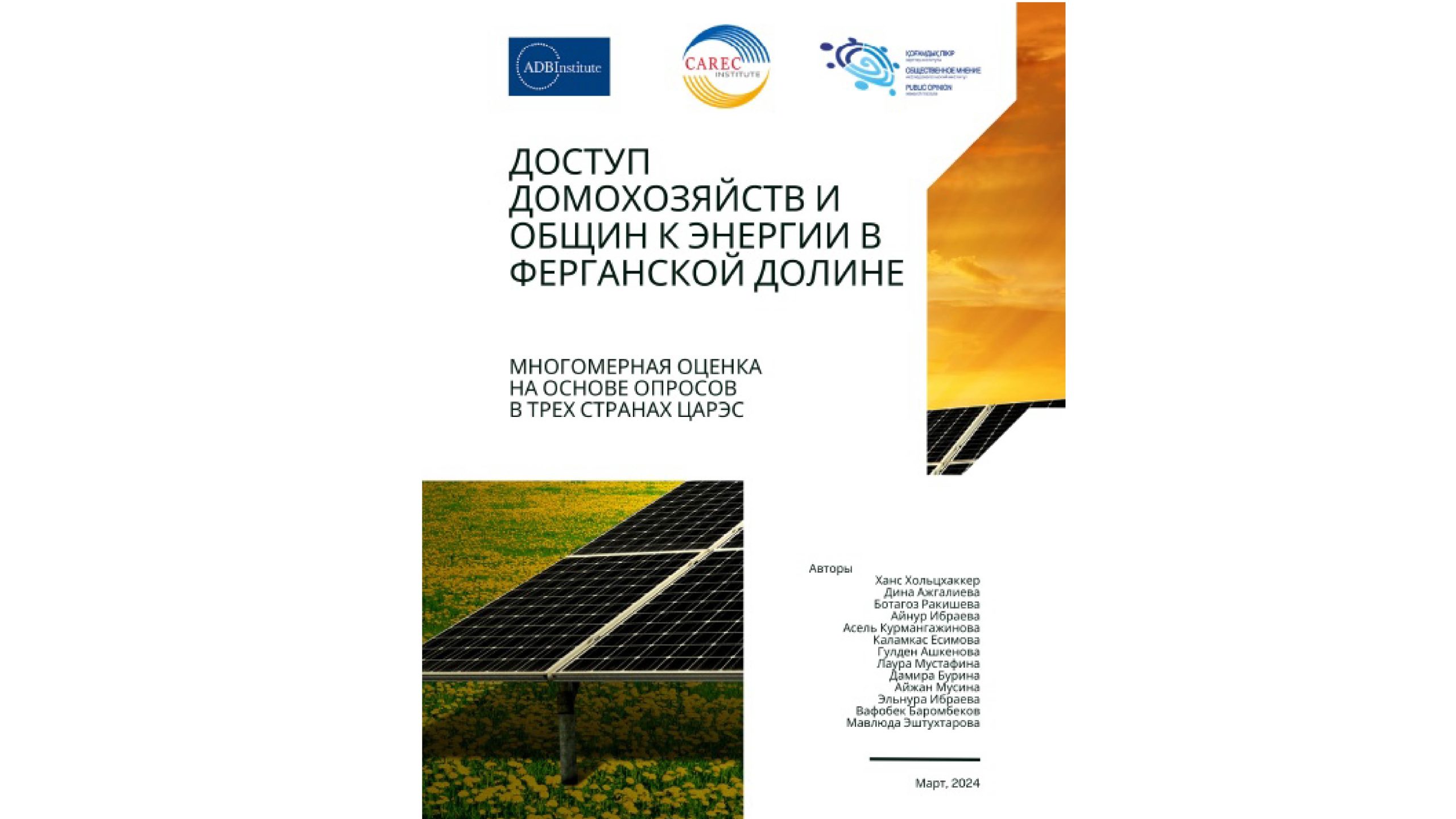 Институт ЦАРЭС опубликовал исследовательский доклад «Доступ домохозяйств и общин к энергии в Ферганской долине», проливающий свет на энергетические проблемы, с которыми сталкиваются домохозяйства в Кыргызской Республике, Таджикистане и Узбекистане. В докладе, подготовленном Институтом ЦАРЭС в сотрудничестве с Институтом Азиатского банка развития и Институтом изучения общественного мнения Казахстана, при финансировании Азиатского банка развития, представлен всесторонний анализ доступа к энергии, моделей использования и готовности к переходу на более чистые источники энергии.