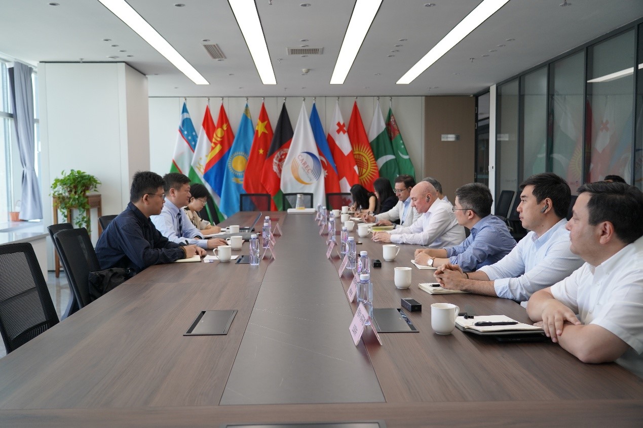 On August 4, the CAREC Institute (CI) welcomed a delegation from the Shanghai National Accounting Institute (SNAI) to its headquarters in Urumqi. The meeting, hosted by CI Director Mr. Charymuhammet Shallyyev, Deputy Director Two Dr. Kuat Akizhanov, and division chiefs, focused on strengthening institutional ties and exploring areas for collaboration.