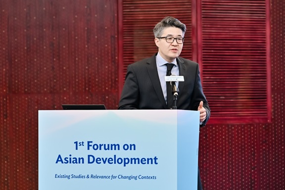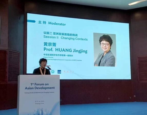 Dr. Jingjing Huang moderated the discussion session on “changing contexts,” which included experts’ presentations of the impacts of climate changes, deglobalization and digital transformation on Asian development.