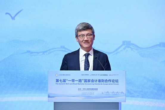 Dr. Li Kouqing, Deputy Director One of the CAREC Institute, attended the Seventh Belt and Road National Accounting Standards Cooperation Forum held in Shanghai on October 14–15, 2025. The forum was hosted by the Ministry of Finance of the People’s Republic of China and jointly organized by the China Accounting Standards Committee, Xiamen National Accounting Institute, the Research Center for the Belt & Road Financial and Economic Development, and Shanghai National Accounting Institute. It brought together delegates from 27 countries and regions across Asia, Africa, Europe, and Latin America, as well as representatives from international organizations such as the International Accounting Standards Board (IASB), the International Sustainability Standards Board (ISSB), the New Development Bank, the Asian Infrastructure Investment Bank (AIIB), the International Finance Corporation (IFC), and the CAREC Institute.